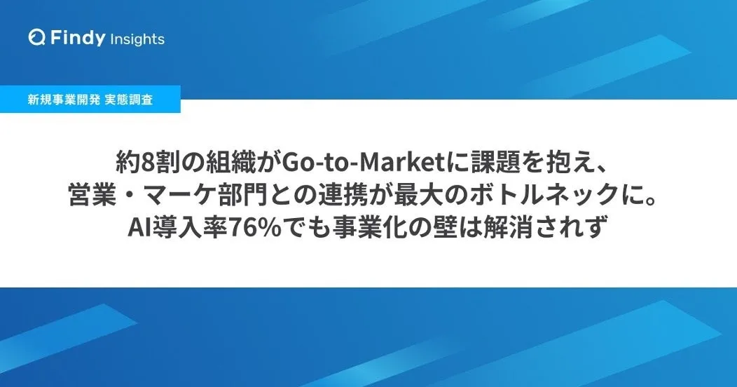 ファインディ株式会社が実施した調査結果によると、新規事業開発や商品企画を行う約8割の組織が、Go-to-Market(市場投入)段階で何らかの課題に直面しています。特に目立つのは、営業やマーケティング部門との連携がうまく機能していないことです。この調査結果は、新規事業を推進する上での大きな障壁が存在することを示唆しています。