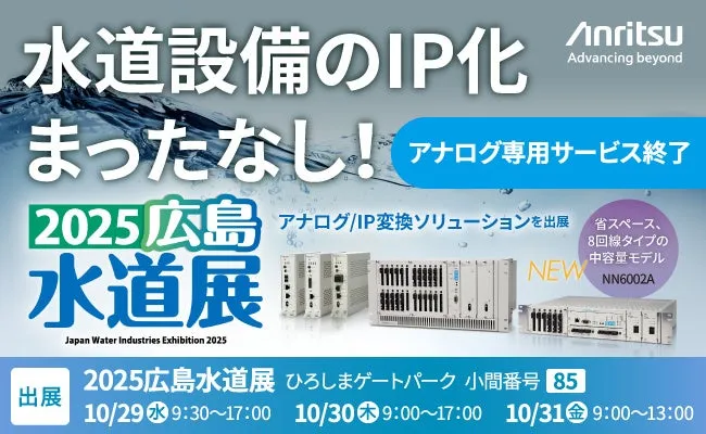 アンリツは、2029年3月末にアナログ専用サービスが終了することを見越して、アナログとIPを融合させるソリューションを提案します。特に、水道関連の監視制御システムやテレメータを活用しつつ、経済的かつ短期間でIP回線への移行ができる「アナログ/IP変換ソリューション」を紹介します。