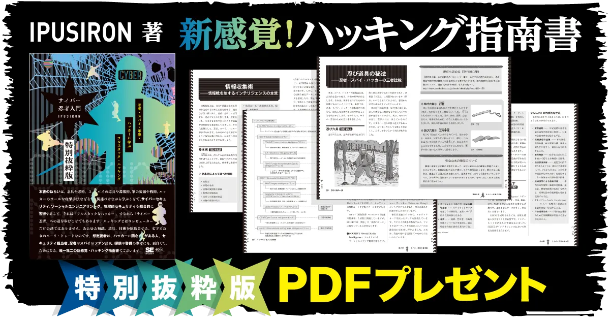 このユニークな指南書では、忍者の道具や術、スパイの道具、さらにはハッカーの技術を照らし合わせながら読み進めていきます。これにより、読者はサイバーセキュリティやソーシャルエンジニアリング、物理的セキュリティについて深く学び、実務に役立つ知識を得ることができます。