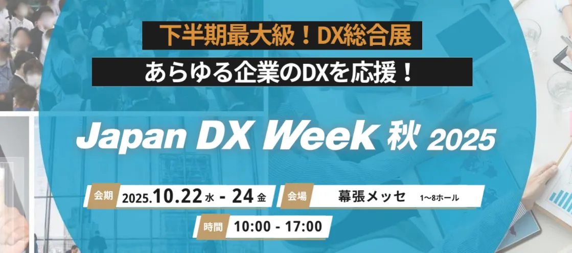 営業や法務、社内業務の最前線で利用される対話型AIが、私たちの仕事を根本から変えつつあります。企業の業務を円滑にするためのAIの導入はもはや必須であり、その進化を実際に体感する場が2025年10月22日から24日にかけて幕張メッセにて開催される「Japan DX Week 秋 2025」です。