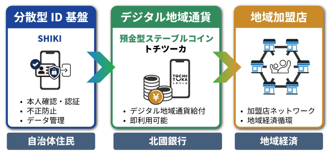 これまで、石川県では北國銀行との連携により、デジタル地域通貨基盤「トチツーカ」が展開されてきました。トチツーカは、銀行預金を基にした預金型ステーブルコイン「トチカ」と、自治体が発行するポイント「トチポ」を一体化した決済基盤です。すでに珠洲市や能美市など複数の自治体で運用実績があり、観光振興策や地域経済活性化事業に活用されてきました。