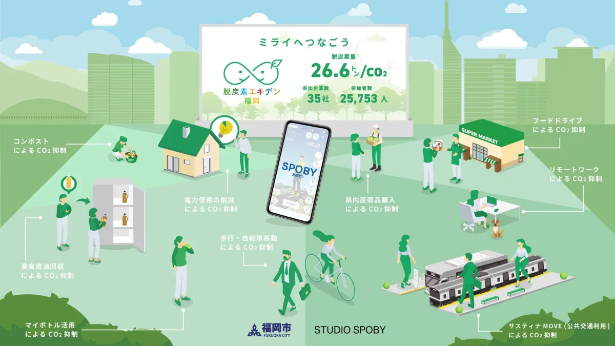 福岡市は、2040年度までに温室効果ガスの排出量を実質ゼロにすることを目指しており、その実現に向けた取り組みの一環として、株式会社スタジオスポビーが新たに「脱炭素エキデン福岡」というプロジェクトを立ち上げました。2025年3月からスタートするこの取り組みは、福岡市民や地域企業の脱炭素型ライフスタイルへの移行を推進することを目的としています。