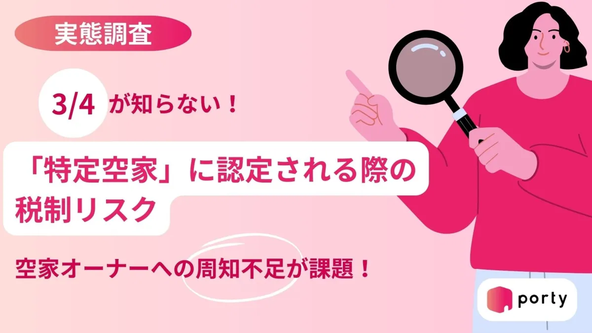 株式会社ポルティが2025年に行った調査によると、全国の空き家オーナー200名のうち、特定空家に認定されることによる固定資産税の軽減特例が外れるリスクを認知している人はわずか25%という結果が出ました。残りの75%は、この重要な情報を理解していないことが明らかとなり、空き家問題の重要性が浮き彫りになりました。