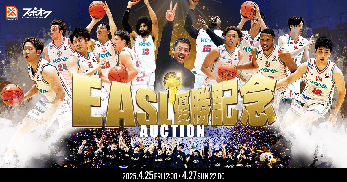 広島ドラゴンフライズが、エンゲート株式会社と提携したスポーツチーム公式オークションサービス「スポオク」にて、EASL(東アジアスーパーリーグ)優勝記念の特別オークションを実施します。このオークションは、2025年4月25日(金)から4月27日(日)までの期間中に行われ、選手が実際に使用したユニフォームやサイン入りのバスケットボールなどの貴重なアイテムが出品されます。