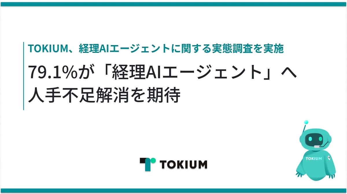 今回の調査を通じて、経理部門におけるAIの重要性と、その一方でAI活用が進まない現実が浮き彫りになりました。人手不足が深刻化する中で、79.1%がその解決策として経理AIエージェントに期待を寄せていることがわかります。経理業務の効率化には、TOKIUMのような導入が容易で持続的なサポート体制を伴ったAIエージェントが不可欠です。今後、このようなサービスが多くの企業に広がることを願っています。