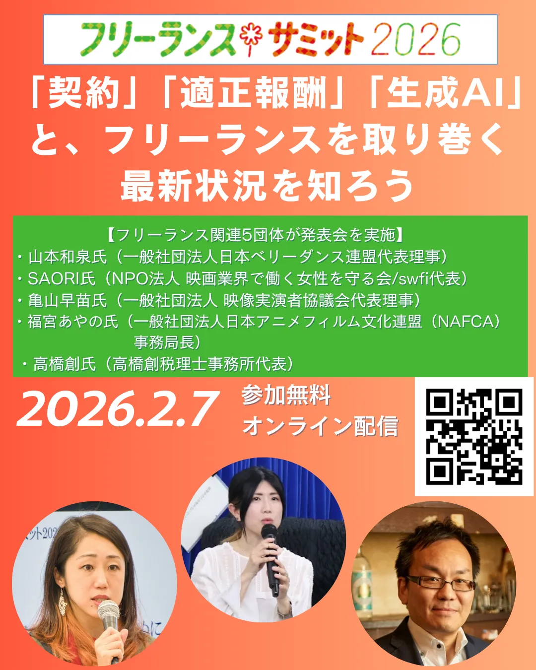 - - プログラム詳細:公式ウェブサイトをご確認ください。フリーランスサミット2026公式ページ