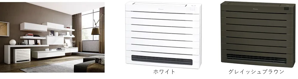 このエアコンの設計は、ただ機能的であるだけでなく、様々なインテリアにもマッチするように配慮されています。シンプルでスタイリッシュなデザインに刷新されており、内装のトレンドに応じたカラー展開も魅力です。明るいホワイトと落ち着いたグレイッシュブラウンの2色から選べ、居室に調和します。