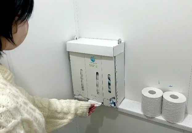 また、MeWディスペンサーは他の大学や学校、さらには自治体や企業、さらには避難所でも導入されています。特に災害時、避難所での生活を強いられることがありますが、そこで生理用品が手に難しい事例も多く報告されています。これらの現状を改善するために、MeWディスペンサーが重要な役割を果たしています。