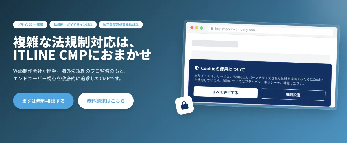 最近、日本では改正電気通信事業法が施行され、企業には利用者情報の取り扱いに関する同意取得が強く求められている。しかし、民間調査によると、実際にCookie利用に対する同意取得を実施済みの企業はわずか14%に過ぎない。ここで『ITLINE CMP』は、国内企業が直面している課題を解決するために開発され、特に日本の法規制や文化に適応した設計となっている。これにより、企業は自社のブランディングを維持しつつ、プライバシーを守ることができるのだ。