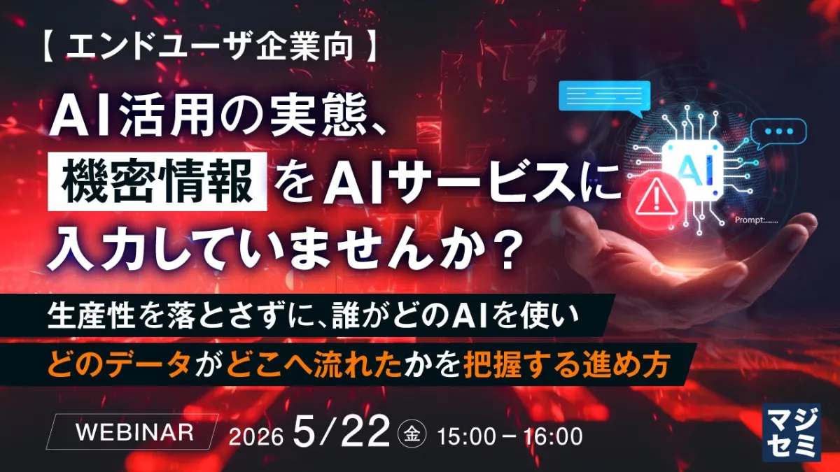 生成AIやAIエージェントの普及が急速に進んでいます。これに伴い、業務効率化や部門横断の業務改善が実現される一方で、思わぬリスクも増加しています。本ウェビナーは、生成AI利用の実態とそのリスクについて深く掘り下げ、どのように安全に活用できるかを考える場です。