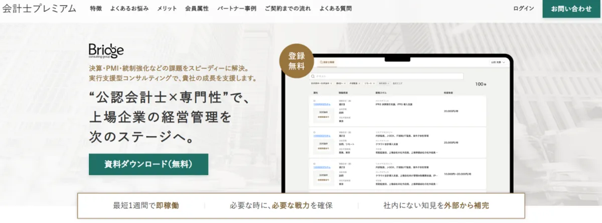 ブリッジコンサルティンググループ株式会社は、2024年11月に提供を開始した「会計士プレミアム」が1周年を迎えたことを発表しました。このサービスは、上場企業の経理・内部統制・経営管理部門に特化し、専門的なスキルを持つ公認会計士とのマッチングを可能にするプラットフォームです。初年度から多くの企業がこのサービスを活用しており、特に決算開示支援やM&A後のPMI支援、サステナビリティ対応といった案件に需要が集中しています。