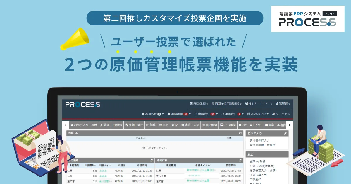 内田洋行ITソリューションズが提供する建設業向けERPシステム『PROCES.S』は、ユーザー参加型のカスタマイズ投票を導入することで、実際の業務ニーズに即したシステム進化を目指しています。本企画の第二弾では、ユーザーから寄せられた意見をもとに2つの新機能が実装され、業務の効率化を図ります。