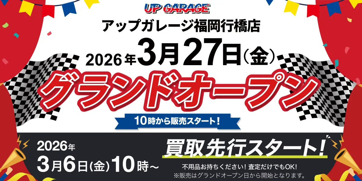 カーとバイク用品のリユース専門店「アップガレージ」が、福岡県行橋市に新店舗をオープンすることが決まりました。この新店舗は、2026年3月27日(金)に「アップガレージ福岡行橋店」としてグランドオープンします。そして、同店舗には二輪専用の「アップガレージライダース福岡行橋店」と、新品タイヤを専門に扱う「タイヤ流通センターアップガレージ福岡行橋店」も併設され、地域の皆様にとってより便利な自動車ライフを提供いたします。