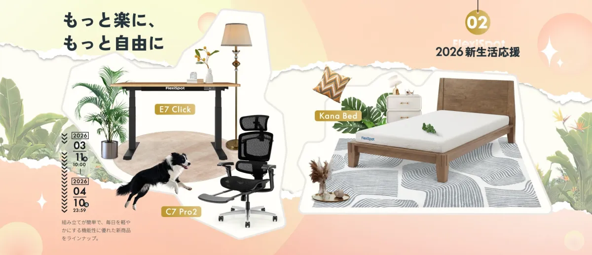 埼玉県入間郡のFlexispot Japan株式会社が、2026年3月11日から新生活応援キャンペーン第2弾を発表しました。新しくリリースされた電動昇降デスクやオフィスチェア、ベッドフレームなどのアイテムが数量限定の特別価格で提供されるこの機会、あなたの新しい生活を素敵に彩るアイテムを手に入れるチャンスです。