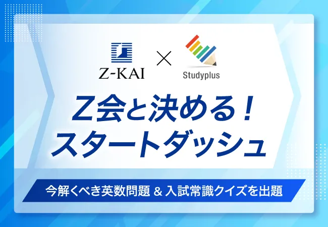 このコラボイベントは、2025年の2月3日(月)から2月28日(金)までの約一か月間、学習管理アプリ「Studyplus」内で行われます。イベントの内容は、Z会が厳選した「英数問題」と「入試常識クイズ」。新高校1年生から3年生を対象に、今の時期に確認しておきたい問題が出題されます。