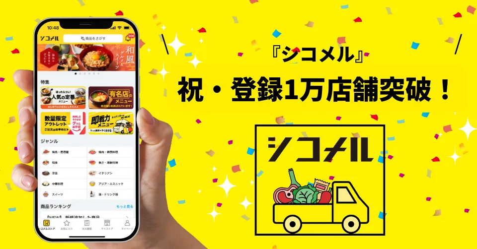 株式会社シコメルフードテックが運営する飲食店支援アプリ『シコメル』が、この度登録店舗数1万店を突破しました。この快挙は、飲食業界の「仕込み時間が足りない」「売れるメニューを増やしたい」といったさまざまな課題を解決するサービスとして、多くの飲食店やフード提供事業者に支持されてきた結果です。