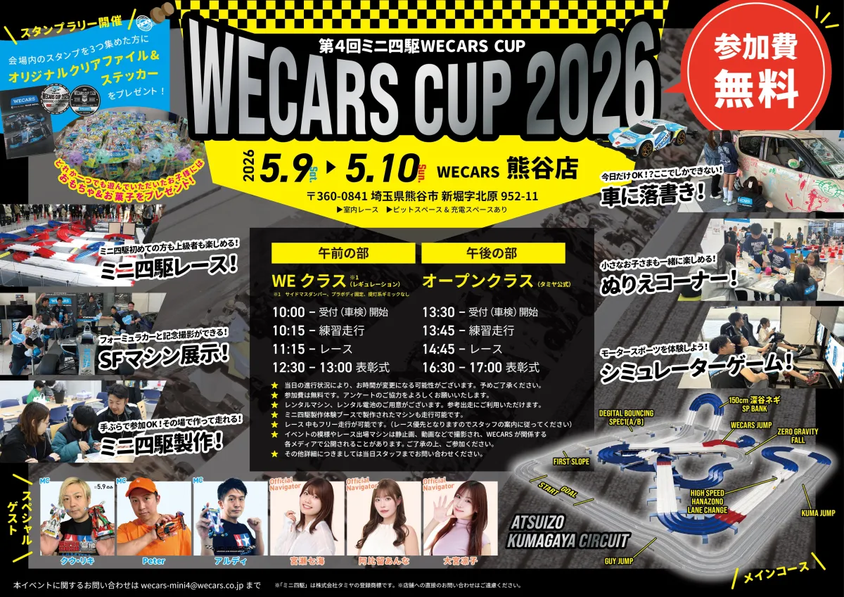 2026年5月の週末、埼玉県熊谷市に位置するWECARS熊谷店で、待望の第4回ミニ四駆WECARS CUPが開催されることが決定しました。初心者から上級者まで楽しめるこのイベントは、ミニ四駆愛好者必見の機会です。