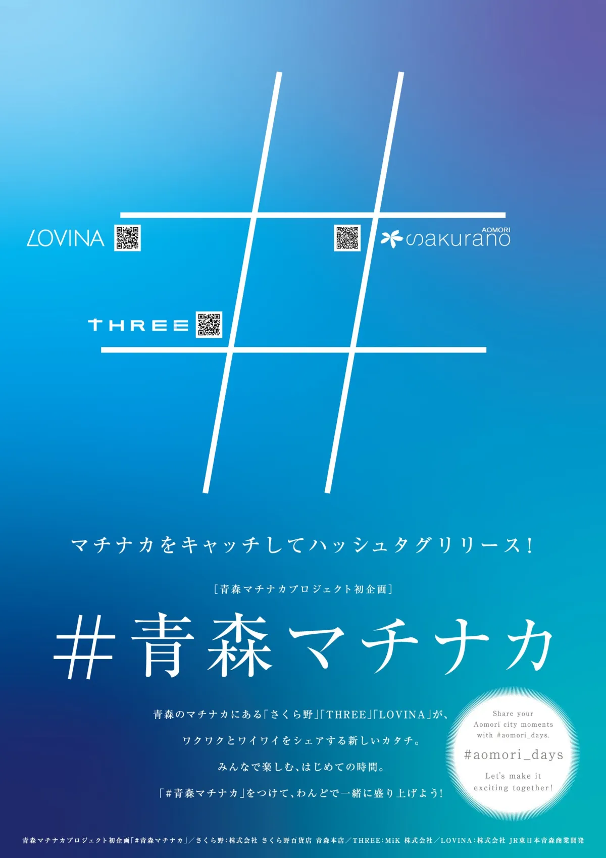 青森市は「みなとまち・あおもり誕生400年」の節目を迎え、青森駅前エリアの魅力を広めるため、「青森マチナカプロジェクト」が始まりました。このプロジェクトは、さくら野百貨店、THREE、LOVINAの3つの商業施設が協力して行われます。