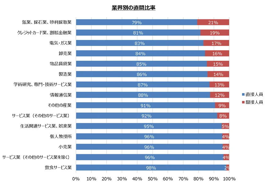 また、調査レポート「産業別直間比率の実態」をぜひご覧ください。詳細な分析や結果が掲載されています。