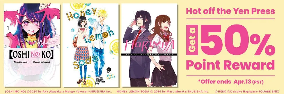 配信開始に伴い、Yen Press作品全体に対して特別なポイント還元キャンペーンが行われます。具体的には、キャンペーン期間中にYen Pressの作品を購入すると、購入金額の50%がポイント還元されます。ただし、付与の上限は3000ポイントまでとなっています。このチャンスを逃さず、お気に入りの作品をお得に楽しむことができます。