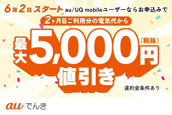 対象となるのは、auまたはUQ mobileの回線を利用中で、新たにauでんきを申し込むお客様です。現在auでんきを利用中の方も、引っ越し先での契約をする場合には施策が適用されるので、特に転居を考えている方にも嬉しい内容となっています。