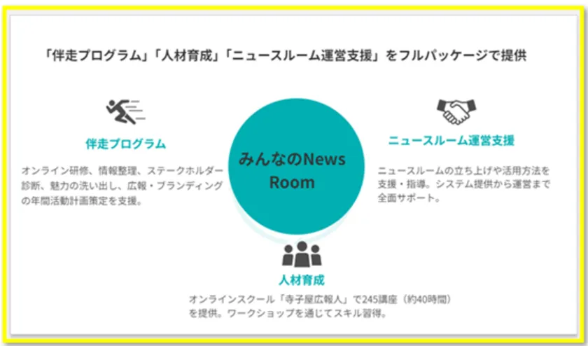 そこで「みんなのNewsRoom」は、広報・ブランディングのスペシャリストを効果的に育成し、自社のストーリーや理念を可視化することで、ブランド強化を図ります。