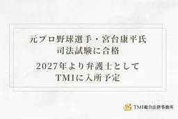 元プロ野球選手の宮台康平氏が、司法試験に合格し、2027年からTMI総合法律事務所にて弁護士としての新たなキャリアを始めることが決定した。この発表は、TMI総合法律事務所の代表である田中克郎氏から行われた。