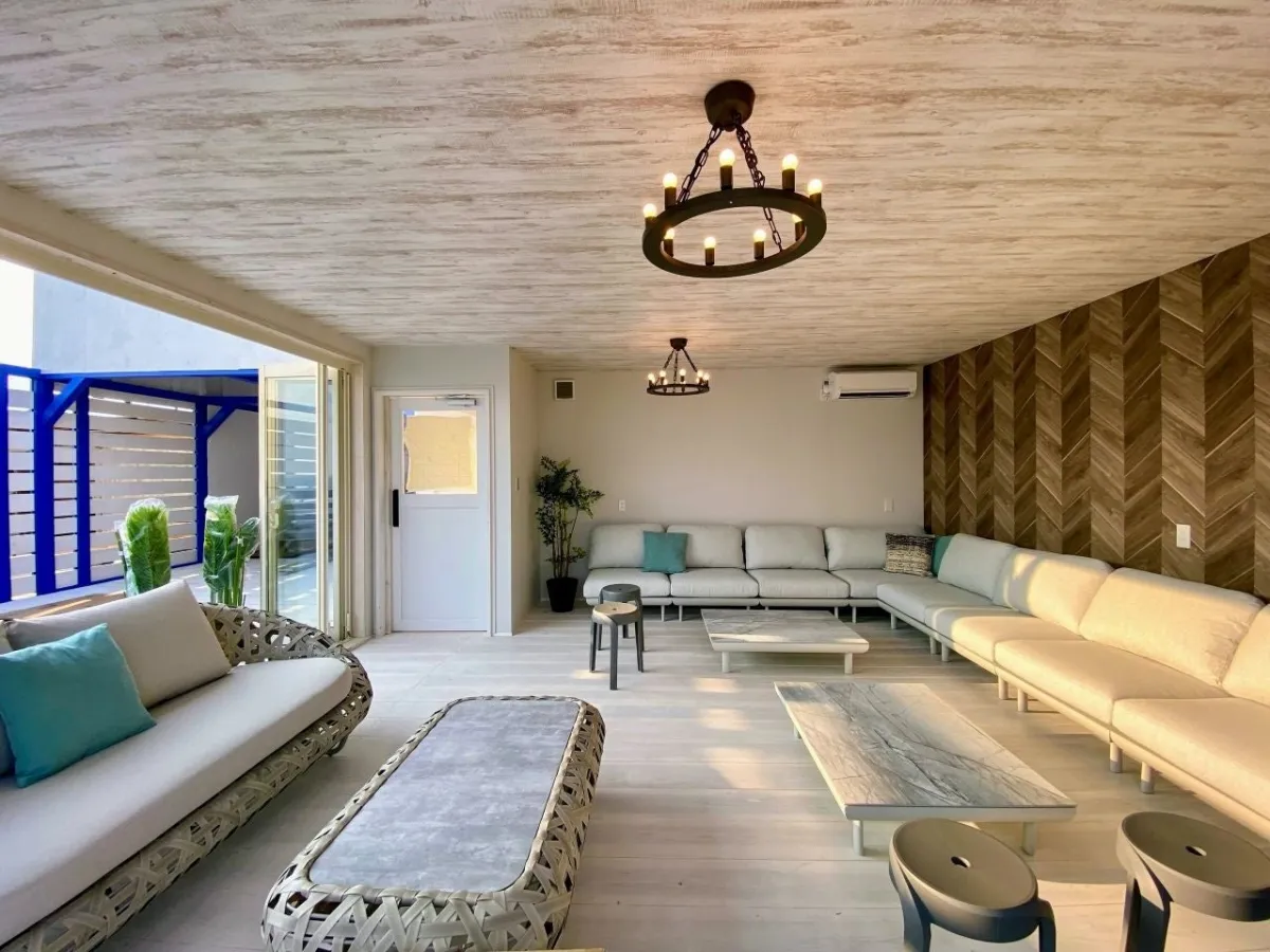 「avex beach paradise」では、印象的な大型L字ソファが中央に配置され、ゆったりとした雰囲気が演出されています。このような空間は、訪れる人々に特別な体験を提供し、思い出に残る夏のひとときを約束します。