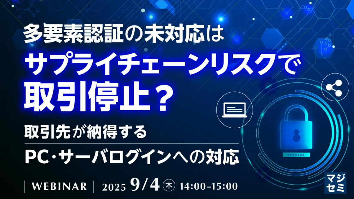 最近、企業間取引におけるサプライチェーンリスクの高まりが取り沙汰されています。特に委託先や取引先を狙った攻撃が増加する中、多要素認証(MFA)の導入が急務となっています。本ウェビナー「多要素認証の未対応はサプライチェーンリスクで取引停止?」では、この問題を深堀りし、実用的な解決策を探ります。