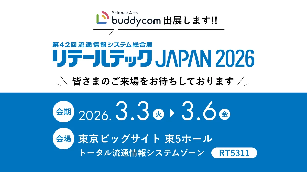 2026年3月3日から6日までの四日間、東京ビッグサイトで「リテールテックJAPAN 2026」が開催されます。この展示会は、国内最大級の流通業向け情報システム総合展で、流通業界が直面する様々な課題を解決する最新のソリューションが集結します。株式会社サイエンスアーツは、この貴重な機会に自社のインカムアプリ「Buddycom」を紹介し、業界の課題解決に向けた取り組みをアピールする予定です。