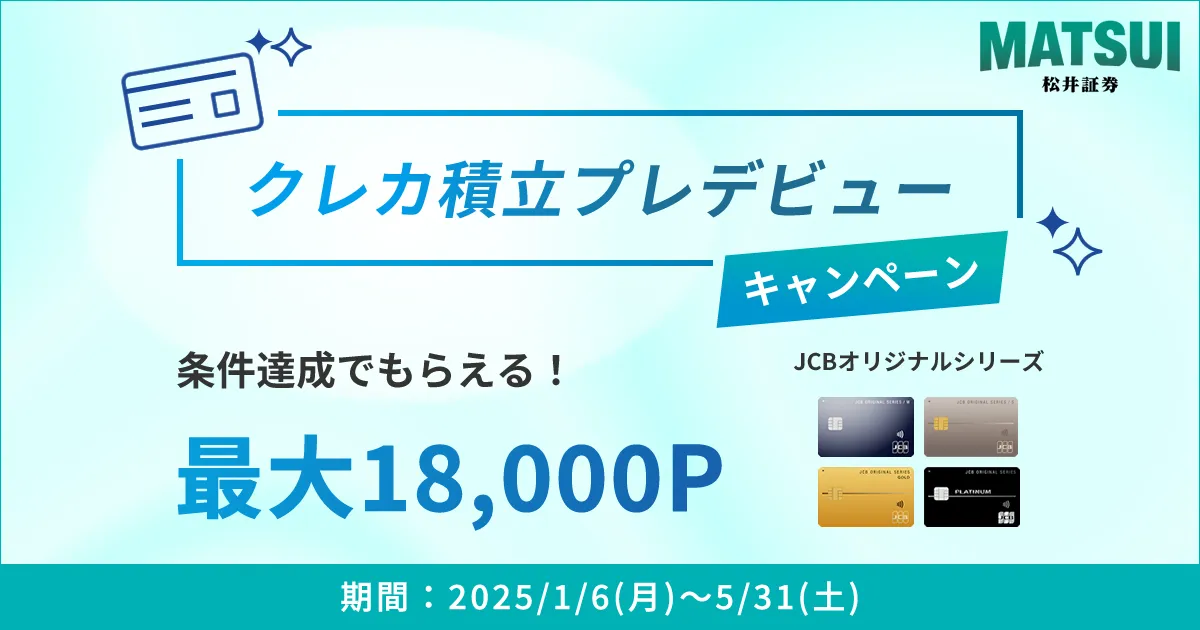 松井証券は、2025年5月からスタートする投資信託のクレジットカード積立サービスに向けて、2024年1月6日から「クレカ積立プレデビューキャンペーン」を開催します。このキャンペーンを利用することで、新規入会をした方に最大18,000ポイントが手に入るチャンスです。