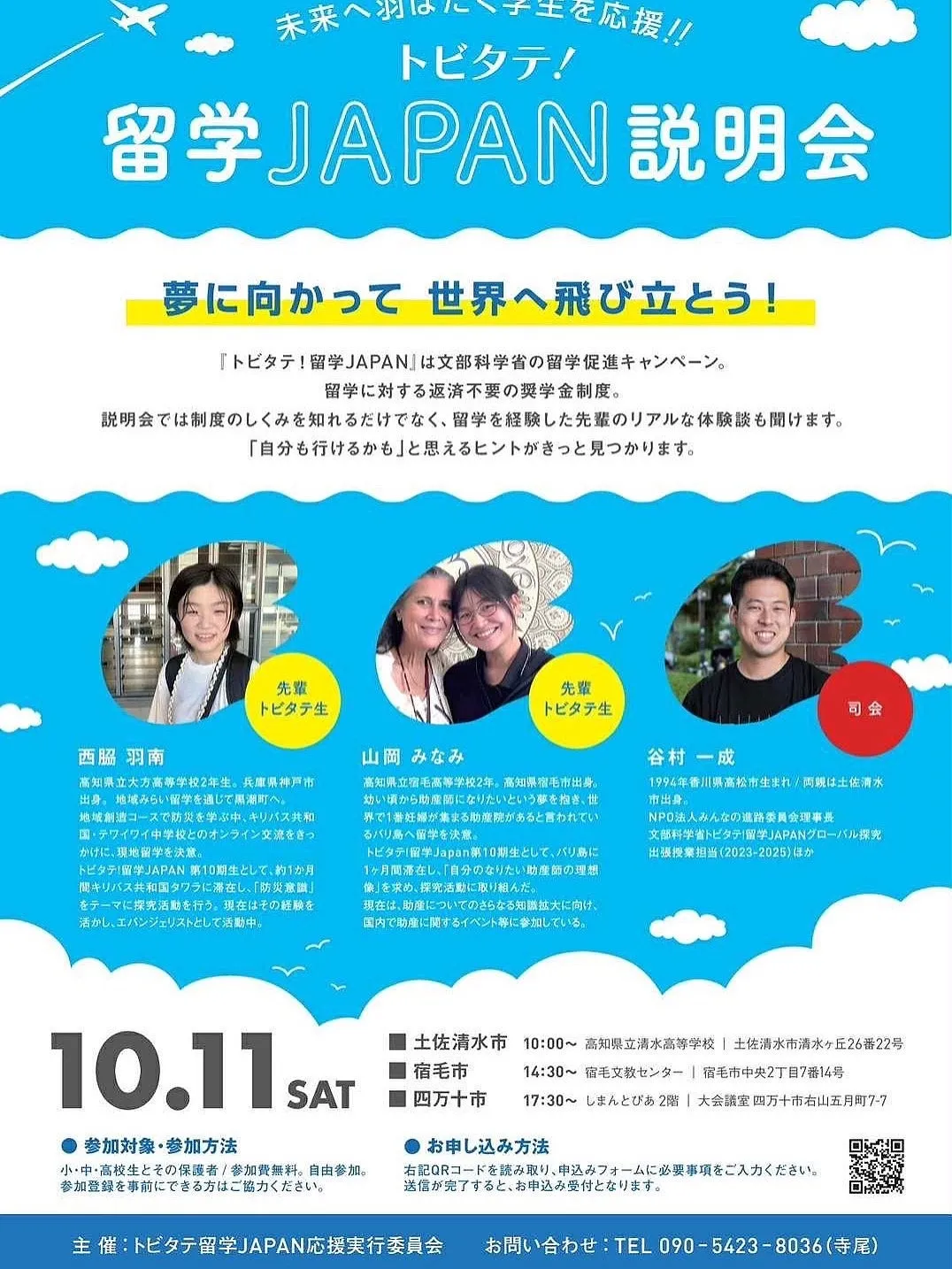 説明会には、実際にプログラムを通じて留学を経験した高知県内の高校生たちが登壇します。彼らの体験談は、今後の留学を希望する学生たちにとって大変参考になることでしょう。