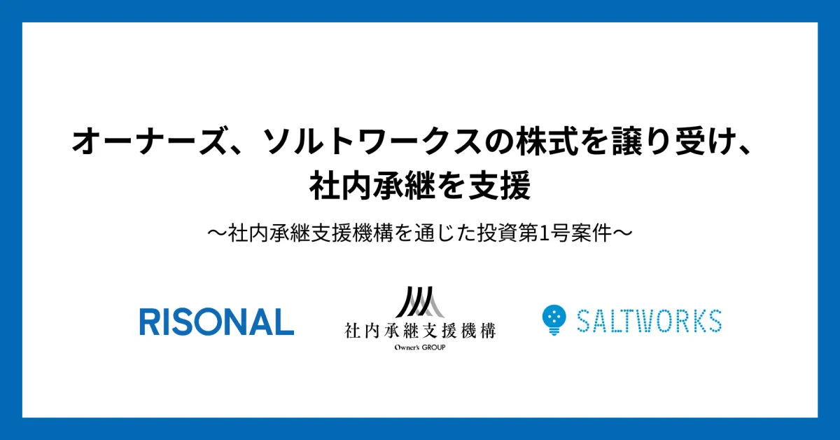 最近、オーナーズ株式会社(本社:東京都港区)が、同社の社内承継支援サービス「RISONAL(リソナル)社内承継」を通じて、株式会社ソルトワークスの社内承継を支援すると発表しました。これは、オーナーズグループの投資会社である社内承継支援機構による初の投資案件であり、中小企業の承継問題に対する新しい解決策としています。