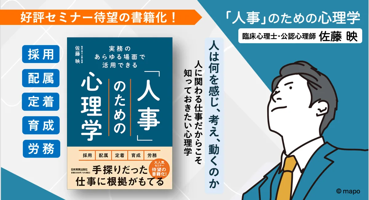 本書のタイトルは『実務のあらゆる場面で活用できる 「人事」のための心理学』、著者は佐藤映氏、定価は2,200円(税込)、全352ページとなり、心理学や人事実務に関心のある方にとって、実務に使える知識を身に付ける大きな一冊となるでしょう。