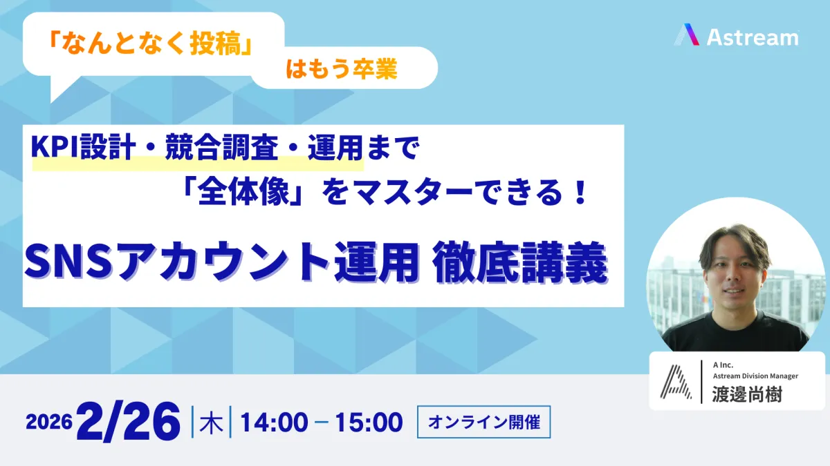 SNSは現代のマーケティングにおいて欠かせないツールとなっていますが、一体どのように運用すれば効果的なのでしょうか。一見簡単に思えるSNSでの投稿も、実は設計不足が原因で思うような成果が得られない企業や担当者が多いのが現実です。この問題を解消するために、株式会社Aは2026年2月26日(木)にオンラインウェビナー「〜なんとなく投稿はもう卒業〜KPI設計・競合調査・運用まで '全体像' をマスターできる!SNSアカウント運用 徹底講義」を開催します。このウェビナーでは、SNS運用における基礎的な知識から実践に役立つテクニックまでを体系的に解説します。