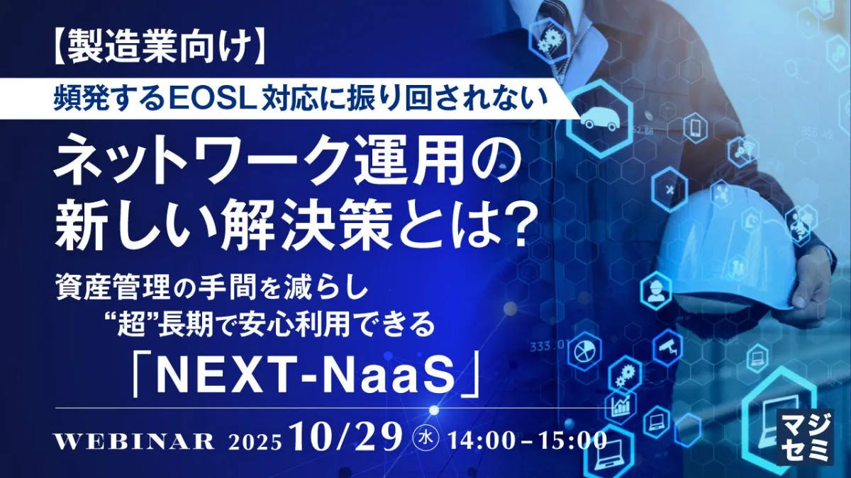 本ウェビナーでは、この「NEXT-NaaS」を詳しく解説し、製造業におけるネットワーク機器の新たな運用の可能性を探ります。興味のある方はぜひご参加いただき、最新の情報を手に入れてください。