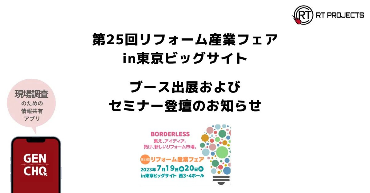 2023年7月19日と20日の2日間、東京ビッグサイトで開催されるリフォーム産業フェアに、現場調査用情報共有アプリ「GENCHO」が出展します。このフェアは、リフォーム業界の最新情報や技術が集結するイベントとして、多くの業者や一般の方々から注目を浴びています。