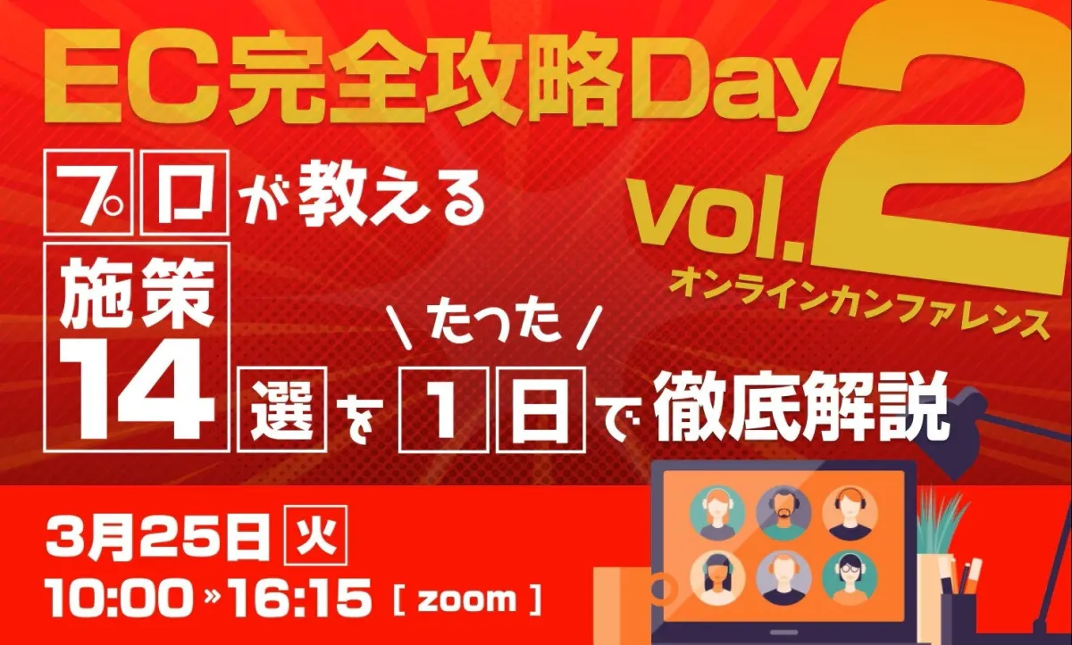 2025年3月25日、オンラインカンファレンス「EC完全攻略Day Vol.2」が開催されます。このイベントには、EC業界を牽引するさまざまな専門家が集まり、成功に導くための施策をあますところなく解説します。参加者は、この貴重な機会を通じて、売上を劇的に向上させるためのノウハウを手に入れることができます。