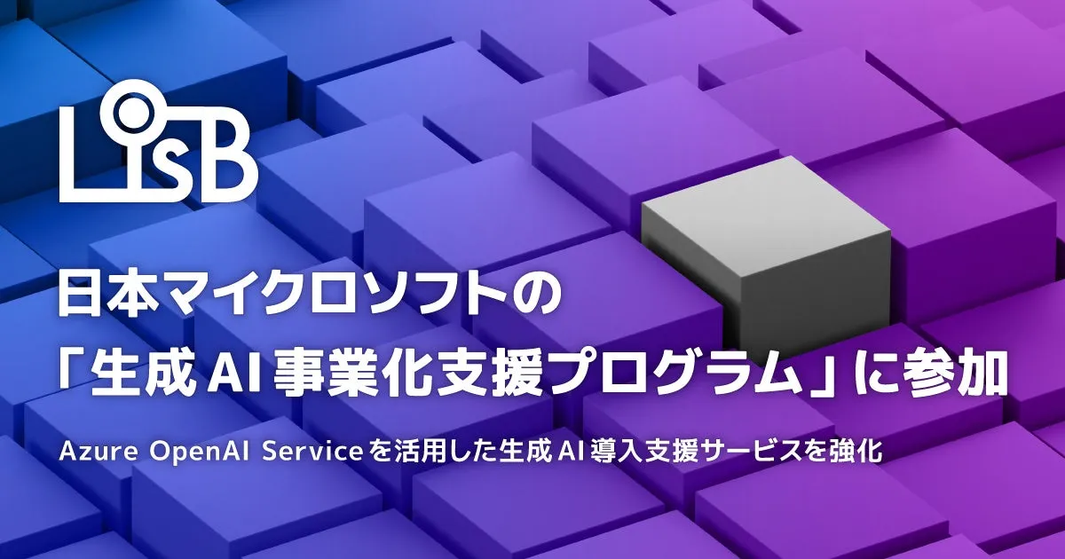 株式会社L is B(東京都千代田区、代表取締役社長CEO:横井太輔)は、日本マイクロソフトが行う「生成AI事業化支援プログラム」に参加することを発表しました。このプログラムを通じて、L is BはAzure OpenAI Serviceを用いた生成AIの導入支援を加速し、企業の業務効率化を図るべく取り組んでいきます。