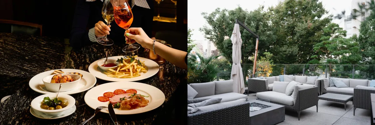 テラス席はこれからの季節にピッタリ。柔らかな陽光とともに心地よい風を感じながら、特別な時間を楽しむことができます。ソファに身を任せ、リラックスすることで、日常を忘れてしまうことでしょう。各席はハッピーアワーをさらに特別なものにしてくれる魅力を持っています。すべての肉はアメリカから空輸され、質の高いプライムグレードの食材のみを使用していますので、食事も一層の満足感をもたらします。