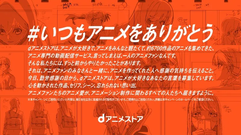 動画配信サービス「dアニメストア」が、2025年にサービス開始から13周年を迎えるのを機に「#いつもアニメをありがとう」という感謝プロジェクトをスタートします。このプロジェクトでは、アニメ制作に関わるすべての人々に感謝の声を募ることを目的としています。
