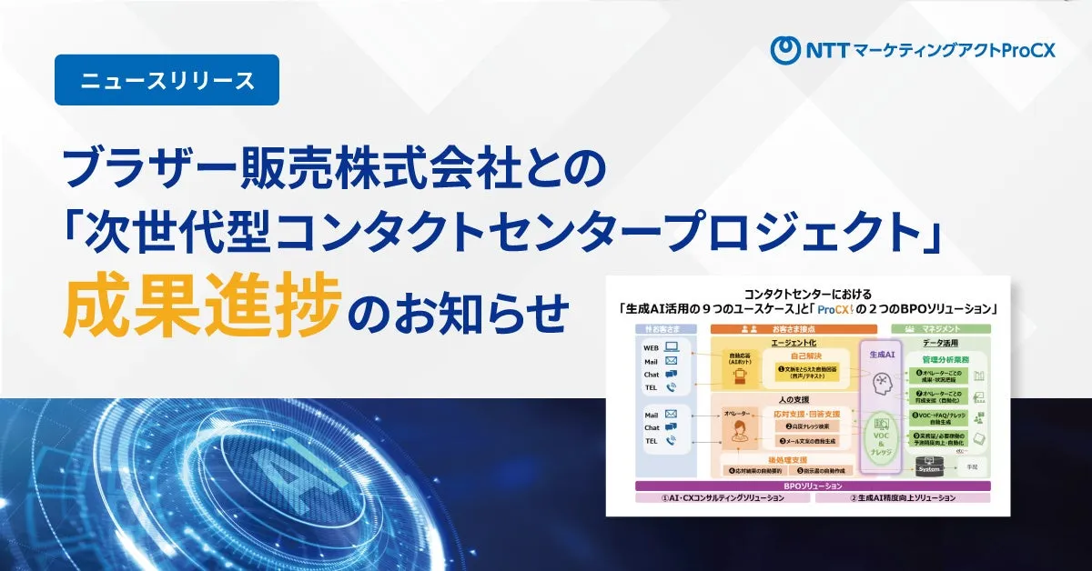 2024年5月、ブラザー販売株式会社と株式会社NTTマーケティングアクトProCX、さらに株式会社ビジョナリーエンジンが提携し、「次世代型コンタクトセンター構想」に基づくプロジェクトが始動しました。本プロジェクトでは、生成AIを活用した業務効率化を目指し、その成果が段階的に現れています。今回は、画期的な変革を進めるこのプロジェクトの進捗状況と今後の展望について詳しく解説します。