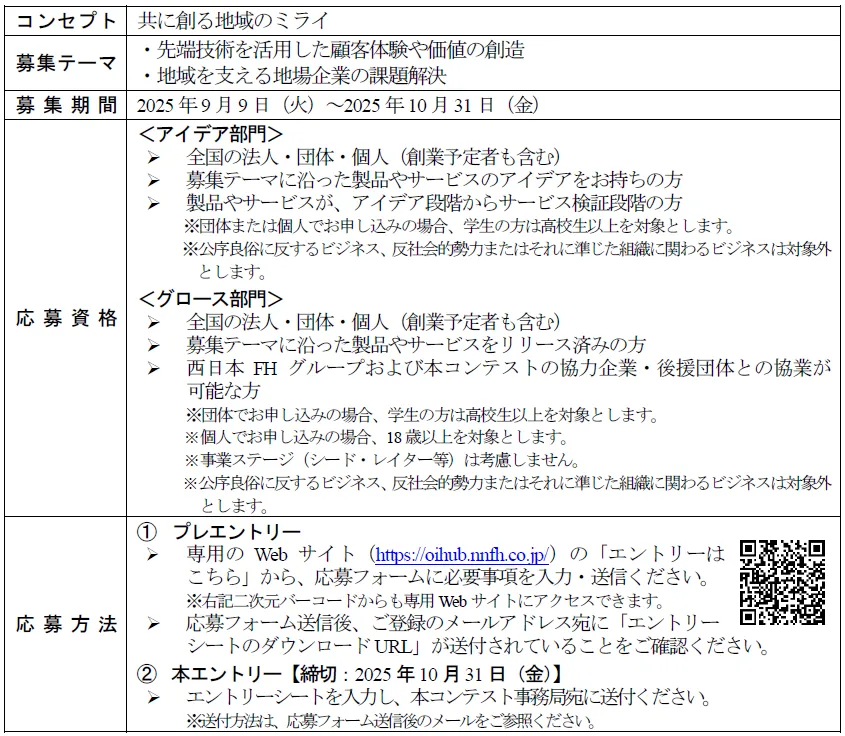 「共に創る地域のミライ」というテーマの下で、両部門では参加者が自らのビジョンを具現化する機会を与えられます。西日本FHグループや地元企業との共同作業を通じて、効率的かつ革新的なアイデアを生み出すことが期待されています。