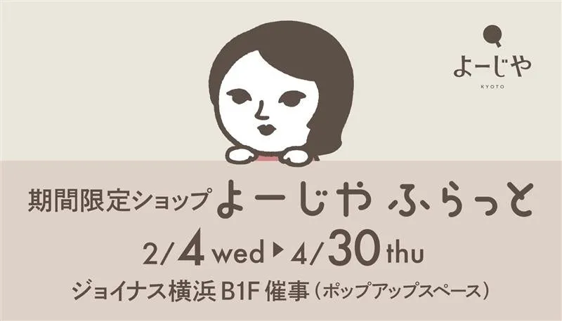 京都発の人気ライフスタイルブランド「よーじや」が、2026年2月4日から4月30日までの期間、ジョイナス横浜で初めてとなる期間限定ショップ「よーじやふらっと」をオープンします。本イベントは、約3ヶ月間にわたり、地域の皆様に「よーじや」の魅力をお届けする貴重な機会です。