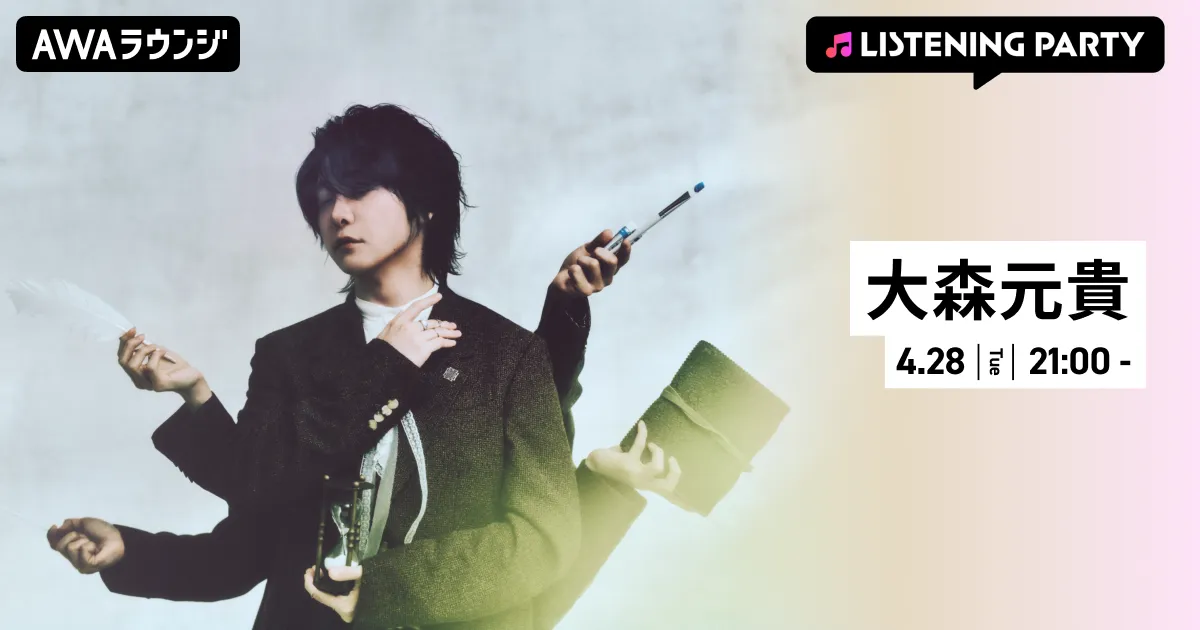 2026年4月28日(火)の21:00より、音楽ストリーミングサービス「AWA(アワ)」が主催で、大森元貴の特集リスニングパーティーが開催されます。このイベントは、新曲「催し」のリリースを祝うもので、過去の名曲も楽しめる機会です。