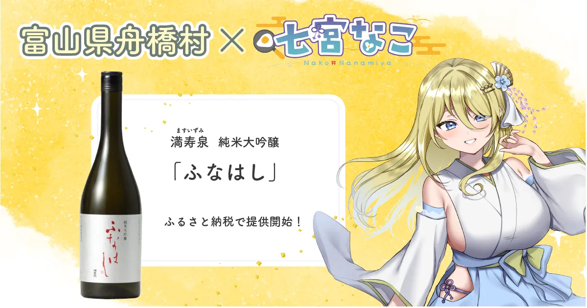 富山県舟橋村が新たに始動したプロジェクトとして、人気のVtuber「七宮なこ」とコラボし、日本酒「満寿泉 純米大吟醸 ふなはし」を南信州の老舗酒蔵と共にふるさと納税の返礼品として提供します。本コラボは、2025年8月16日(土)20時から開始されます。この取り組みは、寄付を通じてファンがVtuberを応援できる新しいスタイルの支援方法として注目を集めています。