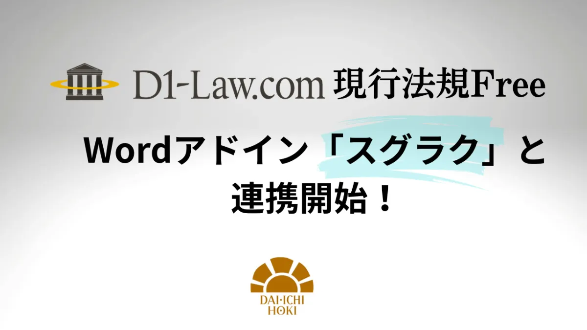 第一法規株式会社が展開している法令情報データベース「D1‐Law.com 現行法規Free」が、FRAIM株式会社の提供するWordアドイン「スグラク」と連携を開始しました。この新しい機能は、法令に関する情報を手軽に確認できる環境を提供し、文書作成の効率を大幅に向上させることが期待されています。