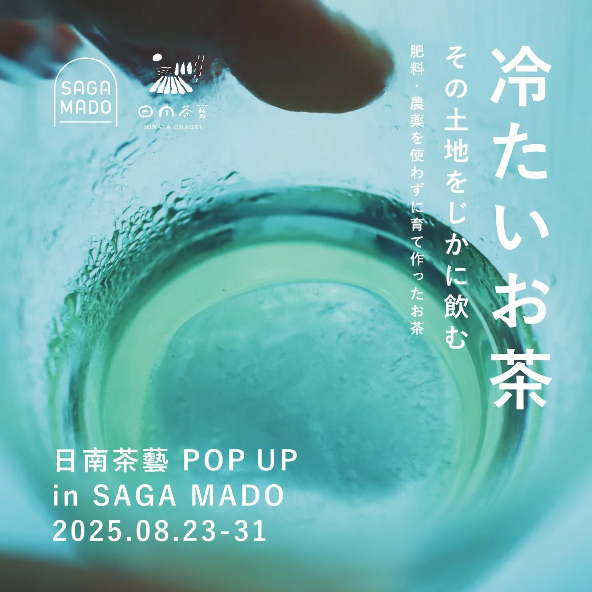 佐賀県のセレクトショップ「SAGA MADO」で、2025年8月23日(土)から8月31日(日)まで、伊万里市の茶農家「日南茶藝」が挑戦するポップアップショップが開かれます。イベントでは、自然栽培の手法で育まれたお茶が一堂に集まります。