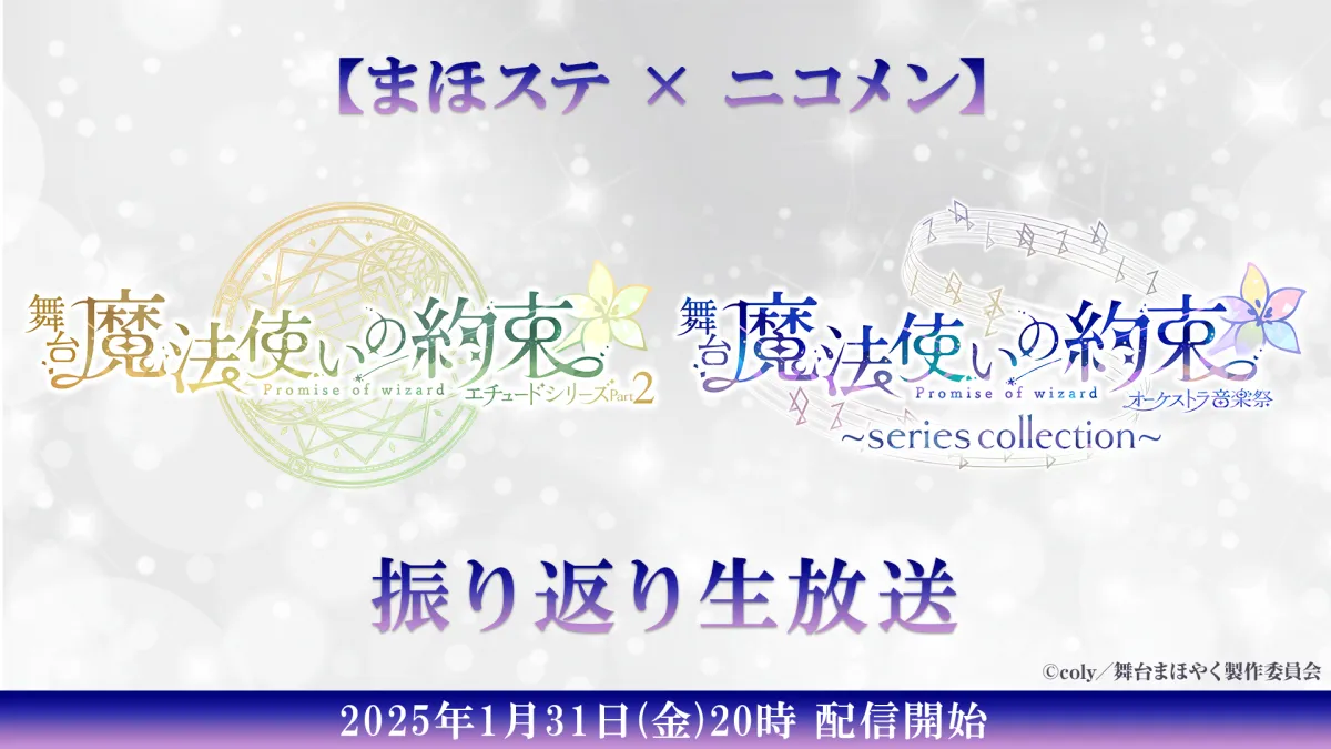 人気のスマートフォン向け育成ゲーム『魔法使いの約束』を原作とした舞台のエチュードシリーズPart2・オーケストラ音楽祭~series collection~が、1月31日(金)20時からニコニコ生放送で振り返り生放送を行います。これがどのような内容なのか、キャストや概要について詳しく見ていきましょう。