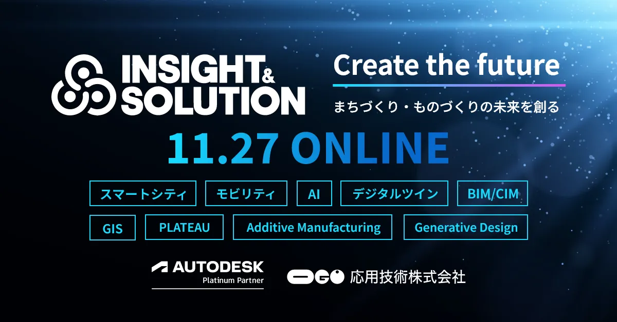 応用技術株式会社が2025年11月27日(木)に開催するオンラインカンファレンス「Insight & Solution 2025」は、ものづくりとまちづくりの分野で最前線の技術が showcased されるイベントです。このカンファレンスは『Create the future』をテーマに、さまざまな技術、特にAI、デジタルツイン、BIM/CIM、GISなどに焦点を当てています。多様な専門家が一同に会し、課題の解決に向けた具体的なソリューションを提案します。
